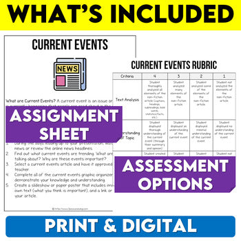 Looking for a NO PREP way to get students thinking critically about current events? This Current Events News Assignment helps students stay informed by analyzing real-world news articles from print or online sources. Designed for flexibility, this resource works with any nonfiction news article or text, making it perfect for social studies, ELA, or journalism classes. Engage students with real-world news analysis!