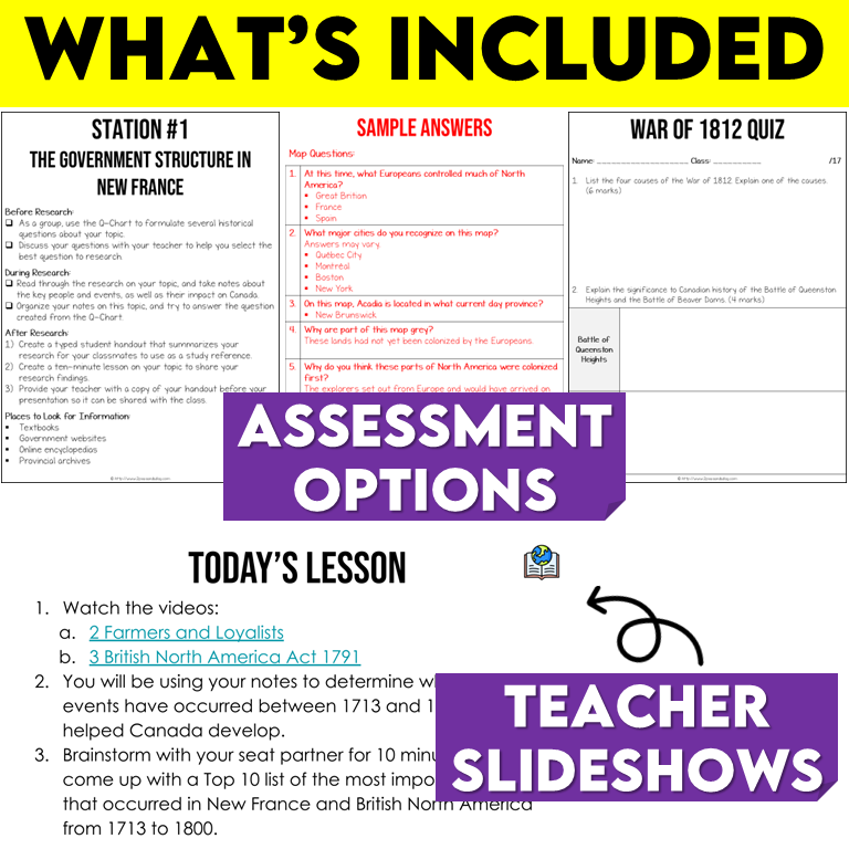 Grade 7 History Bundle New France, British North America, and Conflict 1713-1850