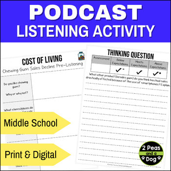 Students will learn about the current trend of the decline in chewing gum sales with this Chewing Gum Sales Decline Podcast Listening Comprehension Lesson. Teachers are provided with an engaging listening comprehension lesson based on a podcast segment about how consumer shopping and phone use habits have impacted chewing gum sales. Students will learn about why researchers think chewing gum sales have declined in recent years. This listening activity comes with pre- and post-listening questions as well as journal prompts and an extension assignment. Use this podcast listening comprehension activity to help reinforce listening, writing and critical thinking skills in your classroom.