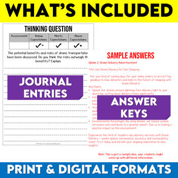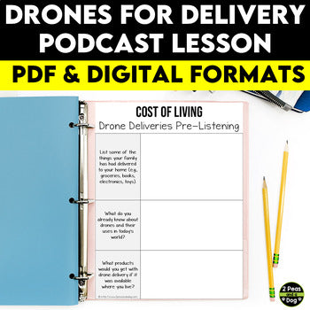 - Engaging Podcast Segment: Students will love learning about how deliveries can be made using drones and explore the possibilities of using the technology in this way. They’ll also have a chance to think about the possible drawbacks of using drone delivery.
