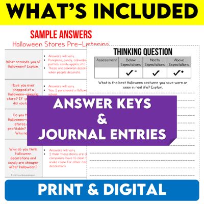 - Engaging Podcast Segment: Step into the fascinating world of Halloween-specific stores with a podcast segment that explores how they thrive despite their limited opening hours. Your students will be captivated by the insights and stories shared.