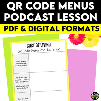 Use this Podcast Listening Comprehension Lesson - QR Code Menus to enhance your students' listening skills. Teachers are provided with an engaging listening comprehension lesson based on a podcast segment about QR Code Menus. Students will learn about the benefits and drawbacks of using QR code menus and will hear why one chef created a QR code menu and decided to stick with it.