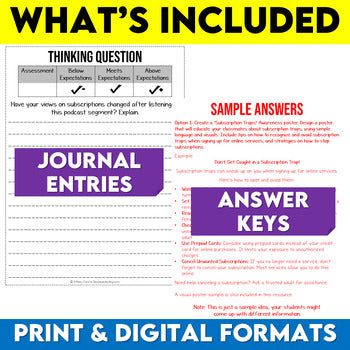 Use this Podcast Listening Comprehension Lesson - Subscription Traps to enhance your students' listening skills. Teachers are provided with an engaging listening comprehension lesson based on a podcast segment about Subscription Traps. Students will learn about how companies can make it hard to unsubscribe from a subscription and what laws are in place in Canada and the United States that protect consumers.