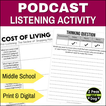 Students will learn about why shopping malls have empty spaces and what can be done about it with this The Decline of Shopping Malls Podcast Listening Comprehension Lesson. Teachers are provided with an engaging listening comprehension lesson based on a podcast segment about the decline of shopping malls in this era of online shopping. This listening activity comes with pre- and post-listening questions as well as journal prompts and an extension assignment. Use this podcast listening comprehension activity to help reinforce listening, writing and critical thinking skills in your classroom.