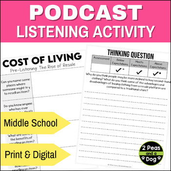 Students will learn about why brands want to resell their used clothing with this The Rise of Resale Podcast Listening Comprehension Lesson. Teachers are provided with an engaging listening comprehension lesson based on a podcast segment about why brands are creating resale programs for their used merchandise. This listening activity comes with pre- and post-listening questions as well as journal prompts and an extension assignment. Use this podcast listening comprehension activity to help reinforce listening, writing and critical thinking skills in your classroom.