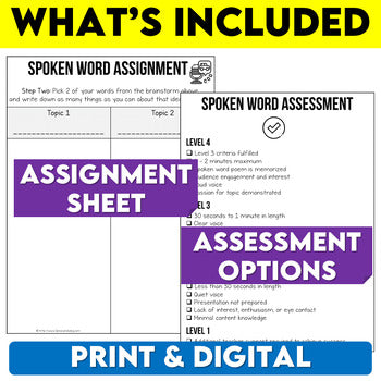 Bring creativity, public speaking, and authentic writing into your classroom with this Spoken Word Assignment! This engaging resource guides students through the process of planning, writing, and performing their own spoken word poems, making it a perfect addition to any 6th, 7th, or 8th-grade poetry unit. Whether you're teaching in-person, hybrid, or online, this resource is fully adaptable with printable PDFs and Google Slides™ versions for seamless integration into Google Classroom™.