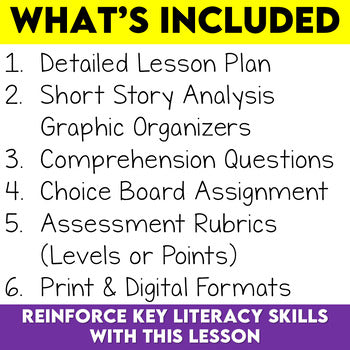 - Due to copyright laws, the short story is not included. Teachers will need to find the short story themselves.